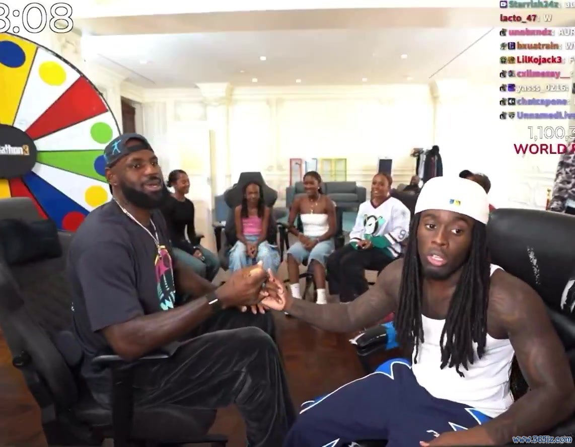 10月1日讯 今日湖人球星詹姆斯做客美国网红、自媒体创作者(凯-塞纳特)Kai Cenat的直播间。