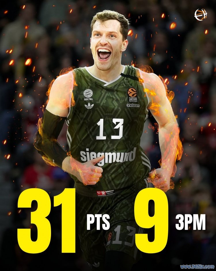 拜仁的德国国手奥布斯特出场26分钟,16次出手全是三分,布莱顿足球直播命中9球篮球图片大全大图, 中超罚球5中4, 网球新闻拿到31分3板。