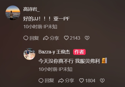 王俊杰则是回复说:“今天没你真不行 我服贝弗利”篮球直播免费高清直播