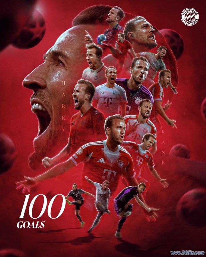 凯恩打进拜仁百球仅用104场,布莱顿创造了21世纪五大职业联赛 单一球队最快百球记录 。