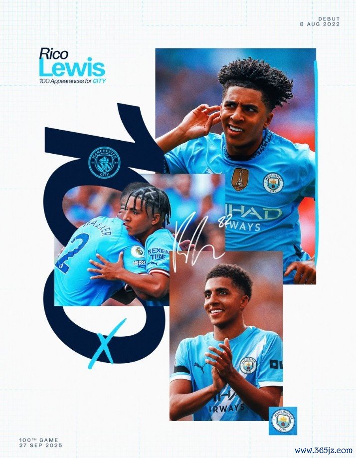 9月28日讯 在曼城5-1大胜伯恩利的英超职业联赛 ,20岁的刘易斯第100次为曼城出场。