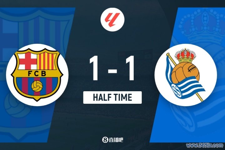 上半场加时补赛2分钟,半场结束,巴萨暂1-1皇家社会。