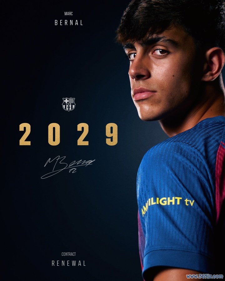 留住未来!官方:巴萨与18岁伯纳尔续约至2029年,据悉解约金5亿