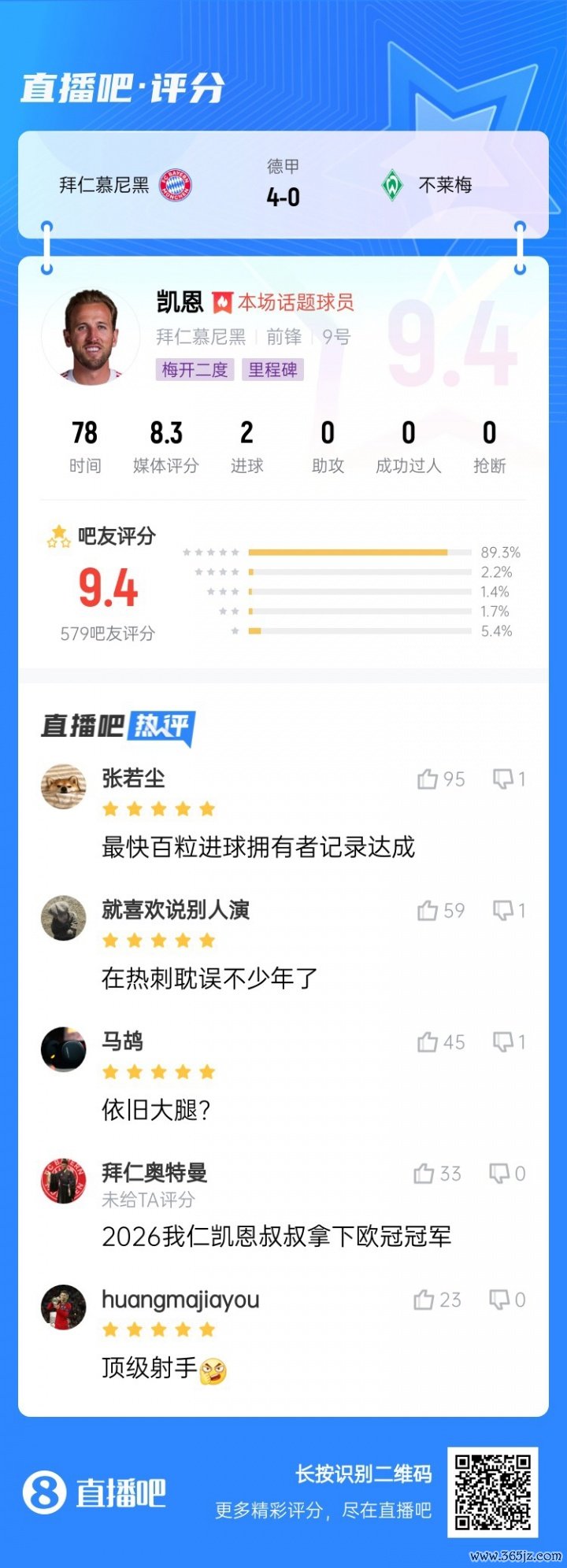 第五轮评选结果结出炉,凯恩连进两球斩获个人拜仁百球, 中超帮助拜仁4-0击败不莱梅, 网球新闻直播平台获得吧友4万多票支持,布莱顿当选【X小红书德甲第5轮最佳球员】!
