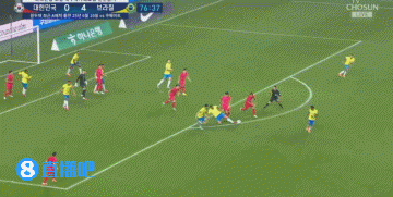 10月10日讯 韩国vs巴西赛事 第76分钟,库尼亚送出直塞,