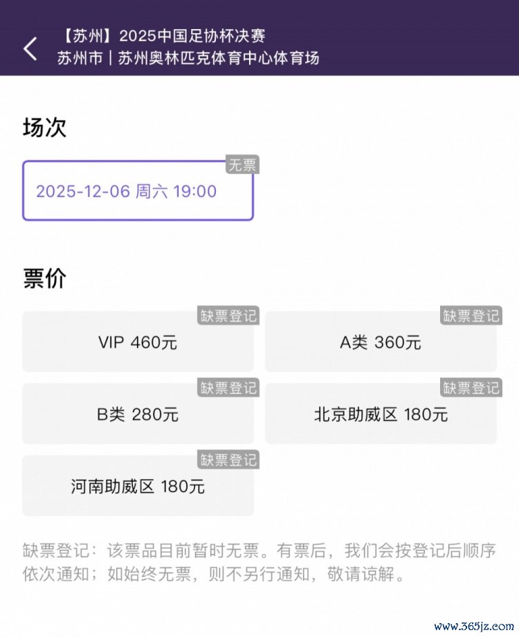 本场总决赛 的球票于今天(11月6日)10:58在多个平台同时发售,销售火爆,布莱顿开售即售罄。