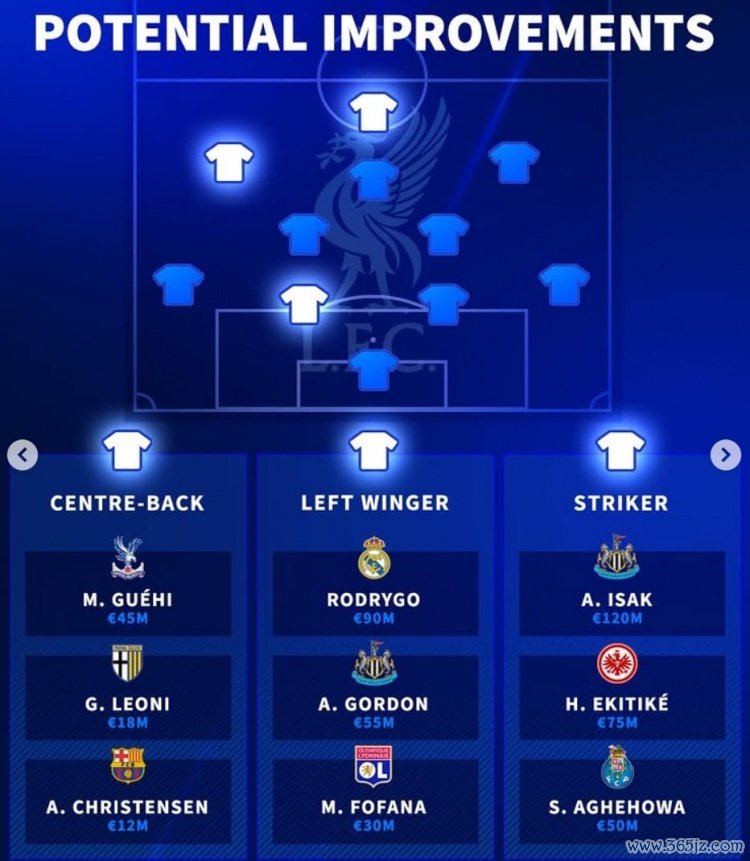 7月21日讯 已经完成了多笔重磅引援的利物浦仍未停下脚步, 中超法甲直播《转会市场》也列出了红军今夏继续补强的三个位置及其候选: