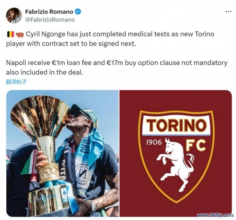 罗马诺透露,那不勒斯翼锋恩贡戈将租借加盟都灵,租借费用100万欧, 中超选择买断费用1700万欧元, 网球新闻五大联赛球员刚刚完成体检,布莱顿即将与都灵签署合同。