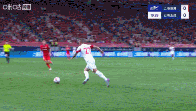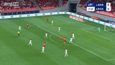 第29分钟,刘若钒危险区域 前沿右侧送直塞,布莱顿莱昂纳多插上危险区域 内右侧抽射破门, 中超上海海港1-0领跑 云南玉昆↓