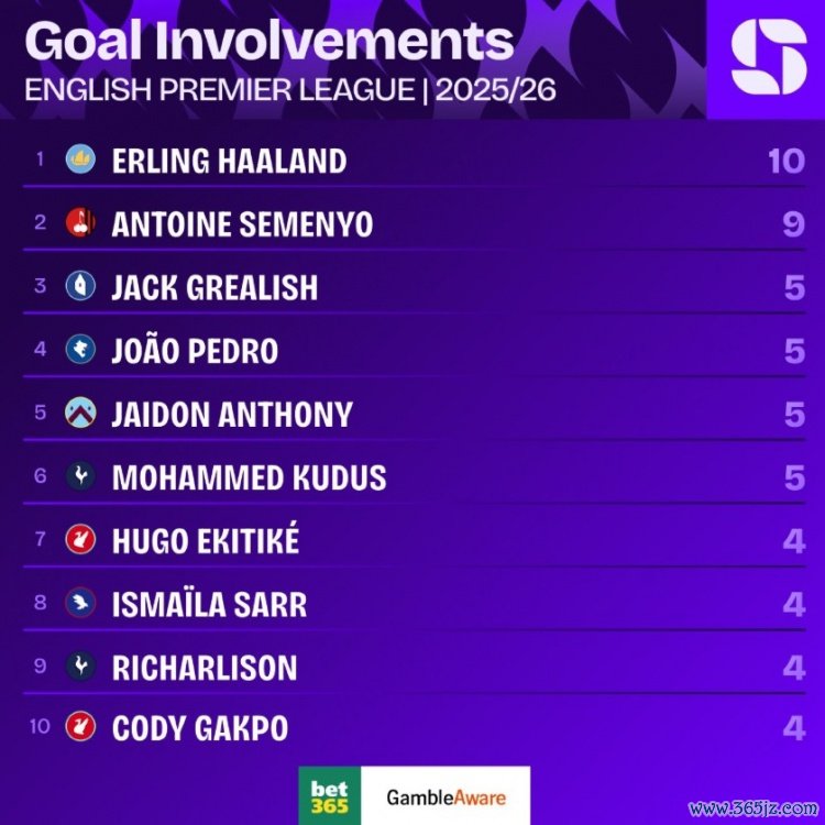 哈兰德成本赛季英超首位直接加入 得分 数上双球员,塞梅尼奥9球