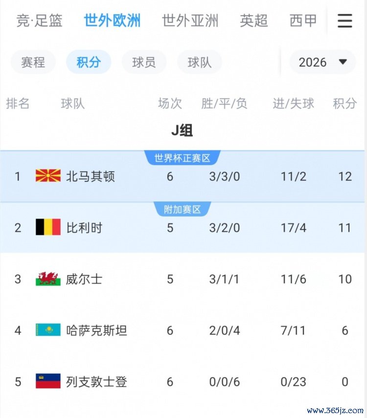 注:目前比利时队位列小组第二,但比北马其顿队少赛一场,比利时队下场将在客场应战 对阵威尔士。